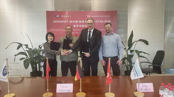 2020年1月13日,公司為德國船東CB建造的38K噸油化船 “CB Adriatic”(船體號:HT-CT38-010)成功簽字交船,該船入DNVGL船級社。