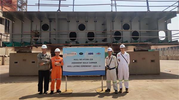 2020年5月18日,公司為OLDENDORFF船東建造的208000噸散貨船(船體號(hào):HT208-226)于10點(diǎn)18分順利上臺(tái)。