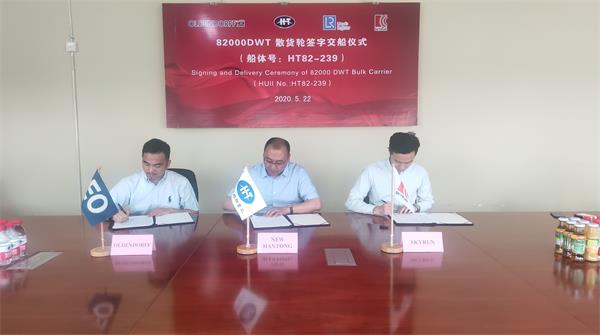 2020年5月22日,韓通船舶重工為德國船東Oldendorff建造的82K散貨輪 “GLAD YOUNG”(船體號(hào):HT82-239)成功簽字交船。