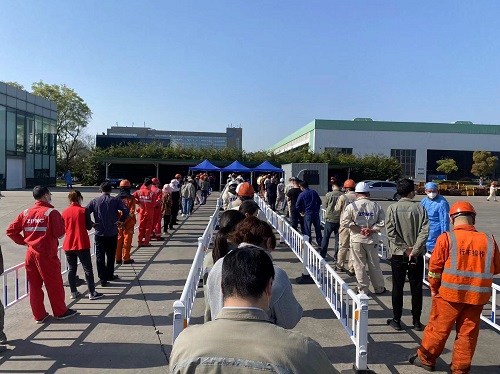 韓通贏吉疫情防控領(lǐng)導(dǎo)小組在廠區(qū)封控期間,全面部署了應(yīng)急處置專班,分類組建應(yīng)急處置隊伍,通過加強培訓(xùn)演練,提升隊伍制度化、規(guī)范化和科學(xué)化操作水平。同時,在開發(fā)區(qū)疫情防控指揮部的有效協(xié)調(diào)下,老洪港管委會抗疫小組組織了南通瑞慈醫(yī)院的采樣醫(yī)生、南通實驗小學(xué)的老師志愿者以及韓通贏吉管理人員組成的志愿者隊伍,每天精心部署核酸檢測采樣的組織工作,確保一旦發(fā)生疫情,迅速反應(yīng)、高效處置。至目前為止,韓通贏吉已經(jīng)組織第九輪核酸采樣組織工作,各個核酸檢測點嚴格按照一米線有序排隊,檢測工作有條不紊地開展,每天累計檢測人員達2600多人并檢測結(jié)果均為陰性。