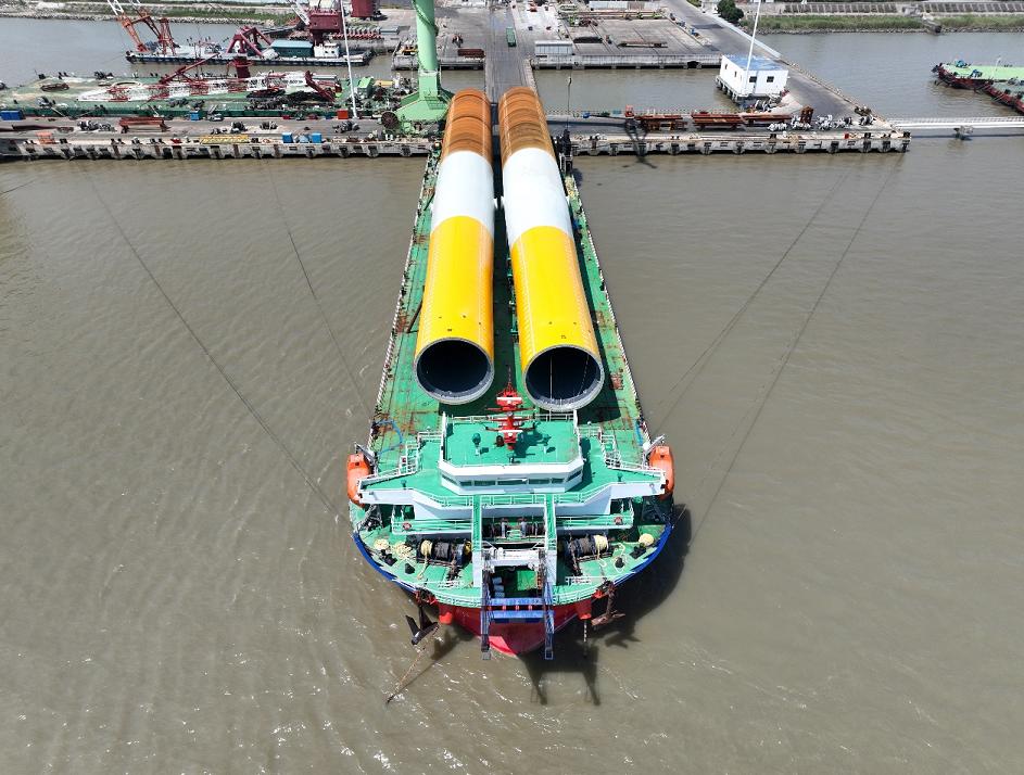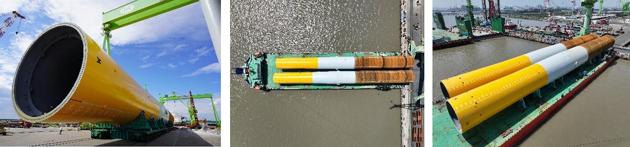 2022年6月25日,海洋水建承接的國家電投神泉二海上風(fēng)電項目大直徑鋼管樁在韓通贏吉碼頭順利裝船發(fā)運,本次發(fā)運的兩根鋼管樁重量均超過2000噸,是迄今為止海洋水建承接的最大直徑、最大重量單樁。從材料備齊至完工發(fā)運歷時33天,創(chuàng)下了單樁制作新紀(jì)錄,進(jìn)一步奠定了海洋水建作為海上風(fēng)電全產(chǎn)業(yè)鏈提供商的優(yōu)勢地位,提升了海上風(fēng)電產(chǎn)品的供貨能力并豐富了海上風(fēng)電產(chǎn)品業(yè)績。