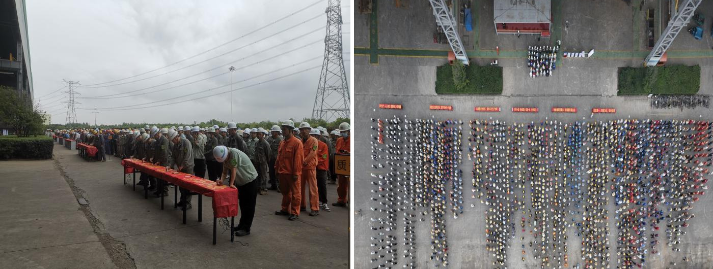 5月31日早上7:30-8:45,公司安委會在分段廠房的東大道,組織全公司正式工、承包方和承租方近4000人召開啟動大會,大會由安環(huán)部吳部長主持,公司經(jīng)營層耿總、圣總、鄧總、顧總出席,大會共有7個議程:千人簽名、活動方案介紹、負(fù)責(zé)人安全承諾踐諾、有關(guān)安全法律法規(guī)集中宣教/典型案例警示教育、電焊工種現(xiàn)場互動、分段陳主任/電裝徐主任作代表發(fā)言、耿總提要求。