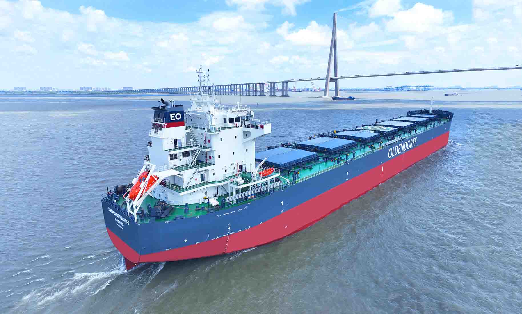 202395日,在大家的共同見證下,韓通為德國OLDENDORFF船東建造的82000噸散貨輪 “KEN OLDENDORFF”(船體號:HT82-273)順利簽字交付,該船于93日在公司碼頭成功舉行了命名儀式。HT82-273是系列船中的第7艘,也是韓通交付給OLDENDORFF的第26艘,屬于目前航運市場主流的散貨船船型,也是公司的拳頭產(chǎn)品之一,入LR船級社。