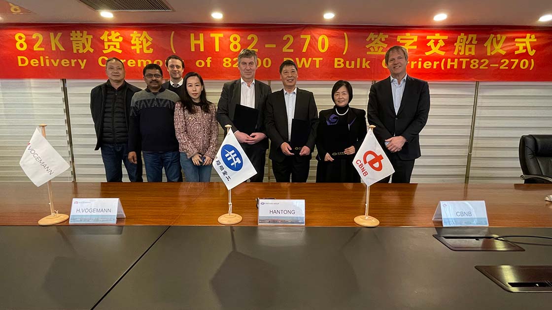 2024年1月22日,韓通為德國H. Vogemann船東建造的第四艘82000噸散貨輪 “ROSTRUM SCEPTIC”(船體號:HT82-270)順利簽字交付。