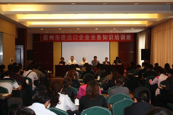 下午2:30,“宿州市進出口孵化促進中心授牌儀式”在該市華夏大酒店隆重舉行。省進出口孵化促進中心陳征主任、省進出口商會馬錦運秘書長、宿州市商務(wù)局王建明副局長等有關(guān)領(lǐng)導(dǎo)參加了授牌儀式。朱亮董事長在會上做了發(fā)言,武義海部長對宿州市40多家重點進出口孵化企業(yè)進行了《外貿(mào)業(yè)務(wù)實戰(zhàn)演練》的業(yè)務(wù)培訓(xùn)。