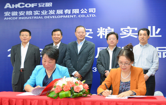 本次推介會包括新品推介和合作簽約兩個主題。在活動現(xiàn)場,安糧實業(yè)石紅董事長分別與合巢經濟開發(fā)區(qū)、合工大農產品加工研究院、省農科院農產品加工所以及合肥天孚君順商貿有限公司代表簽訂了《安糧巢湖食品工業(yè)園投資合作協(xié)議》、《農產品研發(fā)與生產戰(zhàn)略合作協(xié)議》和《“田田屋”產品經銷協(xié)議》,為安糧實業(yè)產品研發(fā)和加工銷售提供更為廣闊的平臺。