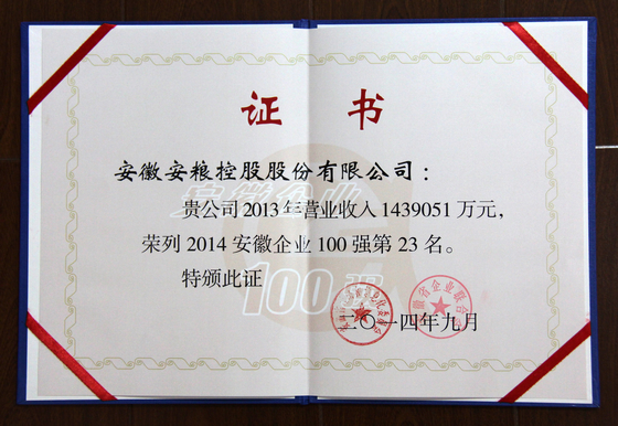 9月26日,“2014安徽企業(yè)100強(qiáng)高峰論壇”在蕪湖市召開。安徽省經(jīng)信委、安徽企業(yè)聯(lián)合會發(fā)布了2014年安徽100強(qiáng)企業(yè)名單,公司位列2014安徽企業(yè)100強(qiáng)第23位。此前在由中國企業(yè)聯(lián)合會、中國企業(yè)家協(xié)會組織的2014中國服務(wù)業(yè)500強(qiáng)企業(yè)評選中,公司位列2014中國服務(wù)業(yè)企業(yè)500強(qiáng)第195位。