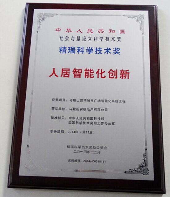 全聯(lián)房地產(chǎn)商會(huì)(原全國(guó)工商聯(lián)房地產(chǎn)商會(huì))2014年度年會(huì)于2014年12月13-14日在北京召開(kāi),第11屆精瑞獎(jiǎng)?lì)C獎(jiǎng)典禮同期舉行。我司“馬鞍山安糧城市廣場(chǎng)智能化系統(tǒng)工程”榮獲第11屆領(lǐng)先技術(shù)產(chǎn)品類精瑞獎(jiǎng)。