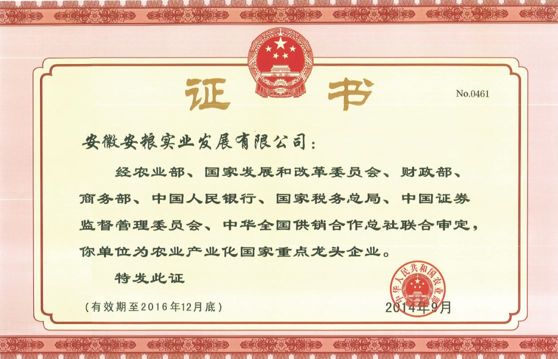 農(nóng)業(yè)產(chǎn)業(yè)化國家重點龍頭企業(yè)