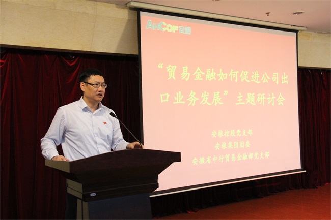 為強化企業(yè)黨建,加強黨團建設結合,合力助推公司高質量發(fā)展,在公司2019年經(jīng)營指導思想引領下,2019528日下午,安糧控股黨支部與安糧集團團委聯(lián)合安徽省中行貿(mào)易金融部黨支部在盛安廣場五樓多功能廳開展了“貿(mào)易金融如何促進公司出口業(yè)務發(fā)展”主題研討會。省中行貿(mào)易金融部黨支部書記、總經(jīng)理何浩,副總經(jīng)理王光建,安糧集團黨委委員、副總裁、工會主席周洪,安糧控股黨支部書記、國際結算總監(jiān)武義海等出席會議,各相關支部黨員、貿(mào)易板塊團員青年及相關業(yè)務人員共六十余人參加。