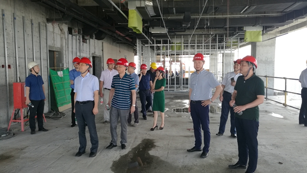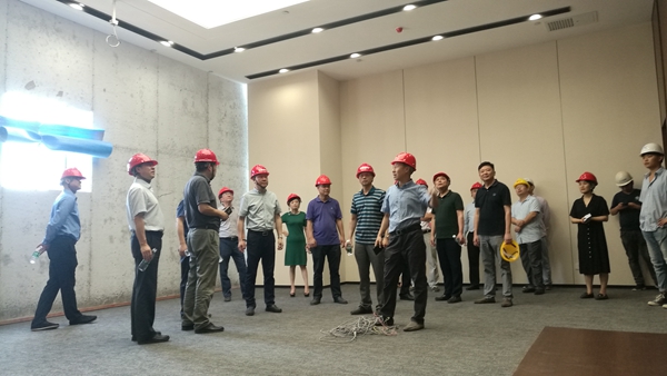 曹訓(xùn)立董事長一行來到精裝修樣板層,參觀了獨立式辦公室、開放式辦公區(qū)、會議室等主要區(qū)域,對空調(diào)系統(tǒng)、電梯設(shè)備、墻地面裝飾材料等進(jìn)行了細(xì)致了解,并對會議中心提出了具體要求。