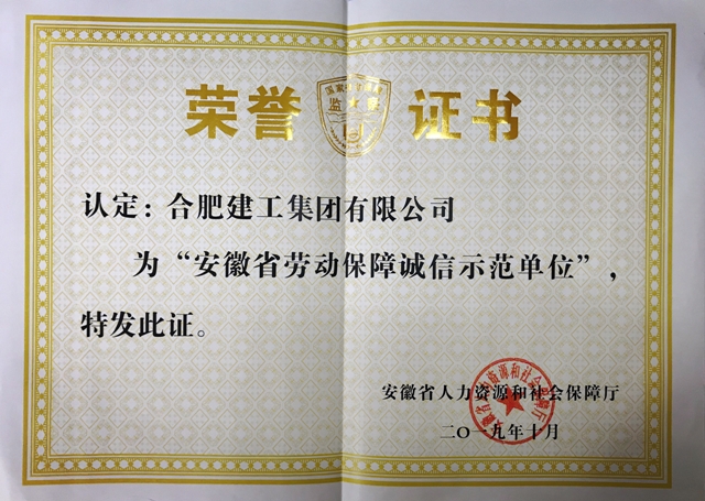 合肥建工榮獲“安徽省勞動(dòng)保障誠(chéng)信示范單位”稱(chēng)號(hào)