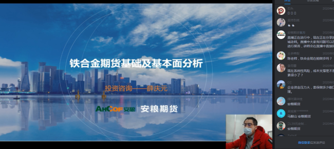 3月17日,安糧期貨利用網(wǎng)絡(luò)直播平臺召開“鐵合金市場策略分析及企業(yè)應(yīng)用研討會”,這已經(jīng)是自疫情發(fā)生以來安糧期貨舉辦的第13場線上營銷會議,有效解決了日常營銷會議無法開展的難題。據(jù)統(tǒng)計已有累計超過11000人次參與了觀看,得到業(yè)界廣泛好評。