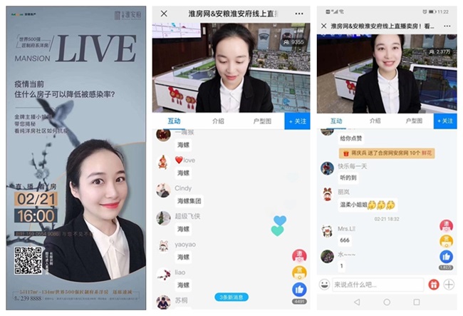 面對售樓部無法開放的不利局面,安糧地產(chǎn)想方設(shè)法創(chuàng)造與客戶交流的機會,創(chuàng)新搭建線上看房小程序“安糧幸福家 快樂新生活”移動售樓部,為購房者提供便捷有效的溝通平臺。截止目前,安糧地產(chǎn)線上售樓部共計收到有效客戶500余組,并且已有部分成功轉(zhuǎn)為成交客戶。此外,為進一步傳遞品牌價值,打造項目影響力,淮安府項目經(jīng)過認真準備推出網(wǎng)絡(luò)直播,實現(xiàn)營銷與購房者“面對面”互動,通過全方位介紹項目信息和線上答疑解惑,吸引目標客戶。首次直播互動在線人數(shù)超2萬,建立超百人意向客戶微信群,反饋效果明顯。