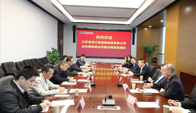 11月4日,江蘇省港口集團(tuán)集裝箱有限公司總經(jīng)理、太倉港港務(wù)集團(tuán)董事長胡美全一行到安糧集團(tuán)調(diào)研。安糧集團(tuán)黨委委員、副總裁周洪,安糧控股財務(wù)總監(jiān)張來往及相關(guān)部門負(fù)責(zé)人參加調(diào)研座談會。