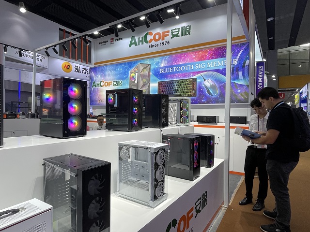 南方一部在本屆廣交會(huì)一期主要參展游戲電腦機(jī)箱產(chǎn)品,從入門級(jí)到高端游戲機(jī)箱齊全。部門在營(yíng)銷展示上采用一系列新穎的形式,展臺(tái)的主通道采用目前比較流行的魚(yú)缸游戲機(jī)箱作為看點(diǎn),用可藍(lán)牙連接手機(jī)和電腦的高端游戲機(jī)箱吸引客戶。為了突出參展效果,所有游戲機(jī)箱都裝上了RGB變色風(fēng)扇。多樣化的變色風(fēng)扇與南方二部的機(jī)械鍵盤吸引了大量客戶駐足觀看。消費(fèi)電子展6個(gè)攤位,突出游戲類產(chǎn)品的裝修風(fēng)格,搭配大氣的門頭、顯眼的海報(bào)燈箱,使客戶在進(jìn)館時(shí)只需一眼就能夠鎖定目光。