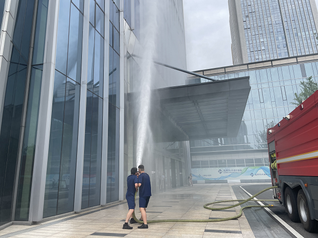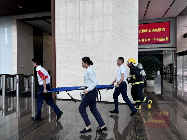6月24日下午3時(shí),消防應(yīng)急演練總指揮下達(dá)演練開始指令。隨著煙霧彈在辦公樓內(nèi)拋擲,煙霧觸發(fā)安糧中心辦公樓火警警報(bào),頓時(shí)消防警報(bào)和消防警鈴響起。隨后各小組迅速按照部署展開滅火救援行動(dòng),消防和應(yīng)急救援隊(duì)員有序引導(dǎo)員工緊急疏散撤離至避難層,緊接著包河區(qū)應(yīng)急救援大隊(duì)消防救援車輛到達(dá)現(xiàn)場,開展了火情偵查、外圍滅火等系列滅火救援行動(dòng)。整個(gè)演練過程中,各小組配合默契、分工有序,圓滿完成了緊急報(bào)警、警戒疏散、醫(yī)療救護(hù)和滅火救援等演練環(huán)節(jié),及時(shí)排除了火災(zāi)險(xiǎn)情,有效達(dá)到了演練目的和預(yù)期效果。