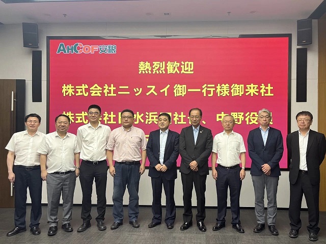 7月2日,日水浜田社長(zhǎng)一行在安糧集團(tuán)總裁楊曉剛陪同下,抵達(dá)安糧實(shí)業(yè)直屬工廠——巢湖嘉誼食品有限公司(以下簡(jiǎn)稱“巢湖嘉誼”)進(jìn)行訪問(wèn)。座談會(huì)上雙方圍繞著良好的合作歷史、目前合作業(yè)務(wù)開(kāi)展情況以及未來(lái)合作發(fā)展方向等議題深入交流,希望借助日水品牌的全球影響力,充分發(fā)揮日水創(chuàng)新研發(fā)技術(shù)優(yōu)勢(shì)和安糧制造優(yōu)勢(shì),不斷推出特色新產(chǎn)品開(kāi)拓國(guó)內(nèi)外市場(chǎng)。會(huì)上,楊曉剛表示未來(lái)安糧食品產(chǎn)業(yè)園規(guī)劃專設(shè)日水產(chǎn)品業(yè)務(wù)板塊,希望可以在日水產(chǎn)品進(jìn)口、日水技術(shù)安糧加工、開(kāi)發(fā)中國(guó)市場(chǎng)方面進(jìn)行全方位合作,推動(dòng)雙方友好合作再上新臺(tái)階。隨后,日水浜田社長(zhǎng)一行參觀了工廠的生產(chǎn)車間,工廠負(fù)責(zé)人重點(diǎn)介紹了安糧旗下兩家日水合作工廠巢湖嘉誼和安慶嘉潤(rùn)吸收合并、業(yè)務(wù)整合及相關(guān)工廠改造具體情況,同時(shí)詳細(xì)介紹了日水產(chǎn)品生產(chǎn)全過(guò)程,各工序嚴(yán)格的品質(zhì)控制得到了日水一行的肯定。
