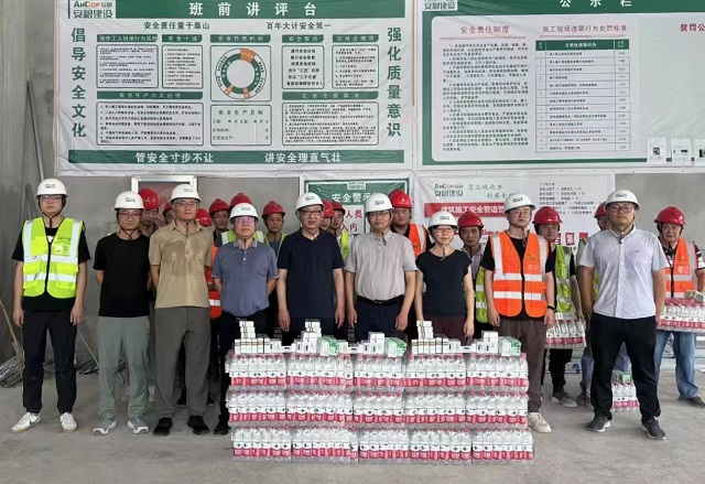 炎炎夏日,酷暑高溫,為切實(shí)做好職工夏季防暑降溫工作,用心用情關(guān)愛一線職工,8月2日,安糧集團(tuán)工會開展“關(guān)愛職工,夏送清涼”活動,工會主席周洪帶隊(duì)來到安糧建設(shè)項(xiàng)目工地,對在高溫條件下作業(yè)的職工進(jìn)行慰問,為奮戰(zhàn)在酷暑一線的工作人員送清涼、送關(guān)懷。