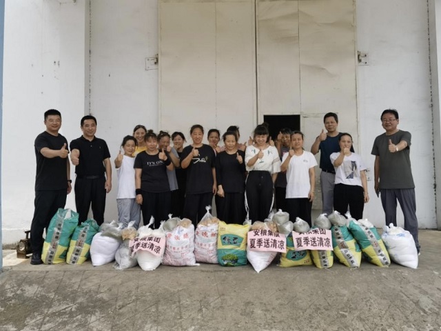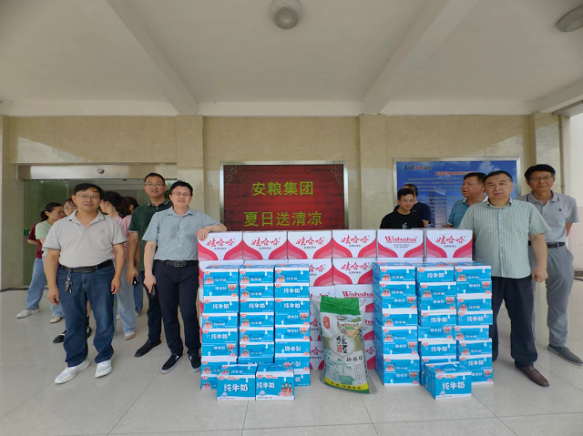 入夏以來(lái),安徽多地開(kāi)啟高溫模式,安糧實(shí)業(yè)于7-8月開(kāi)展了“夏日送清涼”活動(dòng),慰問(wèn)下屬工廠奮斗在一線的員工們,將防暑降溫物資送到基層員工手中,為高溫酷暑下堅(jiān)守生產(chǎn)一線的員工撐起“遮陽(yáng)傘”。