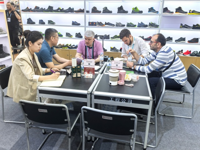 鞋類展區(qū)以創(chuàng)新科技,時尚出行為主題,集中呈現(xiàn)了運動休閑、戶外功能等多類產(chǎn)品。主打輕便安全鞋采用先進的減震與防護技術(shù),兼具輕量化與高強度特性,獲得歐美客戶的高度認可,開展首日就迎來大量客戶詢價洽談;使用環(huán)保耐磨材料制成的雪地靴,憑借出色的保暖與防滑優(yōu)勢,成為北歐市場的潛力爆品。